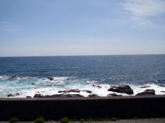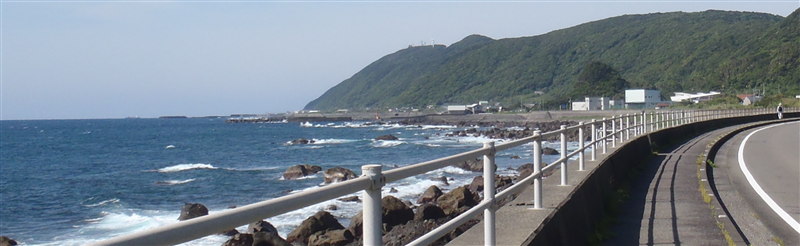 見るものは海しかない道は単調だが、波の音と潮の香りは元気をくれる。2日目、3日目と荒修業をしてきた身にはありがたいことだ。