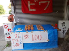 そろそろお昼時。タイミングよくうどん屋ののぼりが見える。セルフサービスで具を選べるスタイル。ぶっかけうどんの大盛りとエビ天、お稲荷さんをチョイス。満腹。