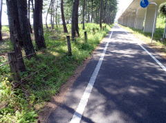 堤防道は左手に海がずっと続く。波の音。また、松林の中の気持ちいいサイクリング