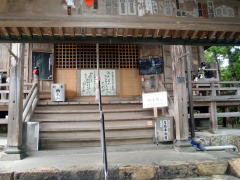 ベンチに戻り、リュックから拝礼用の小物を詰めた小バッグを取り出す。中に入れた輪袈裟を首にかけ数珠を左手に本殿へ進む。そして、ロウソクと線香を供えて納札を納め、鐘をついて賽銭をあげたら、5年ぶりの般若心経を唱える。お遍路の感覚がだんだん戻ってきたぞ。