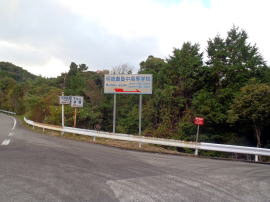 明徳義塾の案内板。山道を下った先のようだ。 |