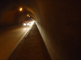 県道はトンネルをくぐるので険しい山道を歩かずにすむし、店もありそうだ。トンネルか、山道か。