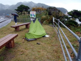 遍路小屋の脇にテントを張っているおじさんがいた。けっこう寒い。今日はここで野宿だと言う。だいじょうぶなのだろうか。