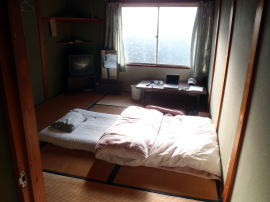 民宿よしもとの夕食はおいしかった。きのうとは大違い。早立ちで朝食はいらないというと、その分を安くしてくれた。一泊一食(朝食なし)6500円也。お握りを頼んだので朝食代をとってくれといってもきかない。好意をありがたく頂戴する。