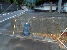 いやー、実に危ないところ。登校途中の子供たちが集まっているのに気をとられ、遍路道の入り口の標識を見落とすところだった。ふっと見たら右折の標識。地図では何度も確認し、見落とさないようにと念じていたのに、あぶない、あぶない。注意すること。見落としていたら20分や30分、すぐにロスして