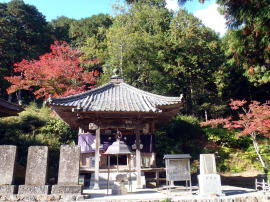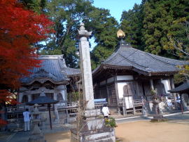 今回の旅もここで最後だ。秋まっさかり。紅葉がすばらしい境内で、故障もなく無事に終わったことに感謝、感謝。墨痕あざやかな納経帳をいただいてリュックにしまい、さて、すべて終わった。