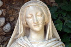 緑に囲まれた小道を歩いていくと、庭の西のはずれに出る。そこに「水の聖母」がたたずんでいた。両手を広げ、やや左に傾けた顔は、まぶたを閉じてまことにおだやかだ。かすかに微笑んでいるようにも見える。
