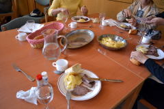 資料室の見学が終わったところでお昼になった。修道院の食堂で、ローストビーフにジャガイモ、パン、カフェオレの昼食。なかなかの美味だった。
