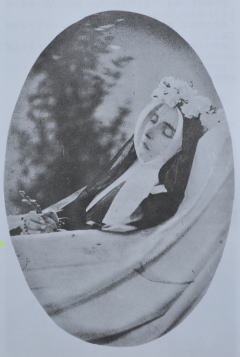 ▲棺におさめられたときのベルナデッタ。(『聖ベルナデッタ―その体について―』より複写)