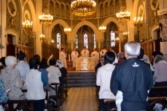 出席したのはわたしたちフランス巡礼団だけではなく、イタリア巡礼団(高山右近・列福を祈る巡礼団)とサンティアゴ巡礼団も加わった。合計で60名近い合同ミサになるようだ。