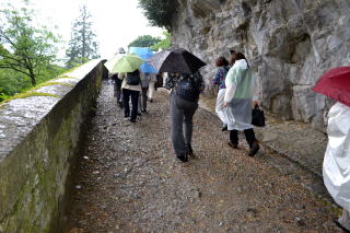 修道院で昼食。休憩後、御聖堂で2回目のわかちあいの集いがあり、終了後は聖域の「十字架の道行」に行く。