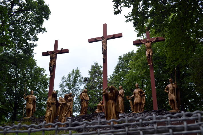 わたしはみんなより一歩下がって道行の群像を眺める。その材質が何かはわからないが、銅像によく使われる黄銅にしては赤みがやや強いか。金属ではないのかもしれない。中央にキリスト、まわりを兵士が囲んでいる。