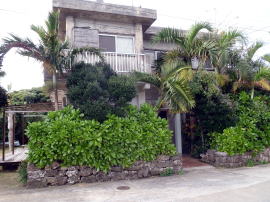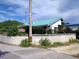 翌朝8時にさわを出て、久高島宿泊交流館に向かう。今日の泊りはここだ。2階の部屋で、クーラーつき4000円。1階はやや安くて3500円だが、平屋が多い久高島では2階家は珍しい。眺望もいいはずだし迷うことなく2階に決めた。