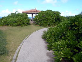 荷物を置いてさっそく昨日歩き残した島の西側部分を歩く。いったん港まで出て、そこから海沿いの道を北に向かう。漁港を過ぎて少し行くと墓地。昨日は避けてしまったが、今日はそのまま直進し、墓地を左手に見ながら進む。ていみ城、ヤグルガーを拝巡し、いよいよフボー御嶽だ。