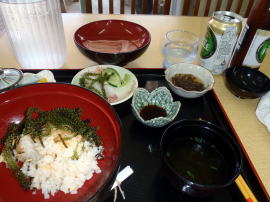 お昼に食べた海ぶどうのどんぶり定食。 |