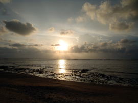 水平線のかなたには、まだ低い太陽がまぶしく熱くきらめいている。この島では太陽(ティダ)は特別な存在らしい。こんな伝承がある。