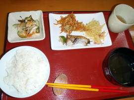 民宿さわは素泊まりなので、夕食は「食事処とくじん」に行く。さしみ定食1500円。