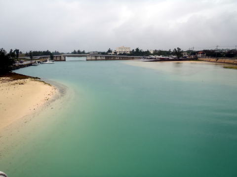 伊良部島と下地島を結ぶ橋の上から見た海峡。ここはいちばん広いところだが、狭いところでは20メートル足らずの幅になる。
