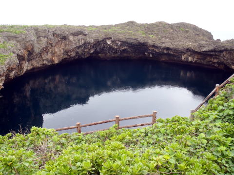 帯岩から10分ほど歩くと通り池に着く。ここは、下地島の観光スポットとしてはいちばん有名なところだろう。