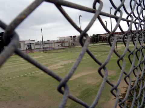 さてと、飛行場のまわりをぐるりと半周して、次の目的はテニスコートだ。
