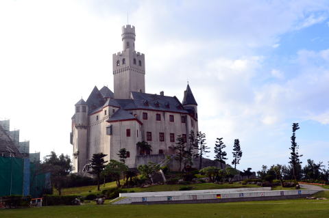 うえのドイツ文化村の博愛記念館。中世ドイツのマルクスブルグ城を再現したものだという。あとで知ったのだが、ベルリンの壁も展示しているそうだ。見逃したのは残念。 |