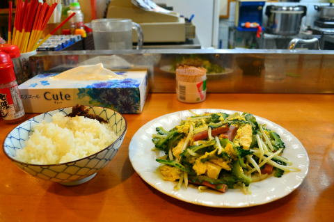 ゴーヤの火の通り具合が絶品。自分でつくると、どうしても柔らかくなりすぎるのだが、これはシャキッとしてるのに生ではない。プロの技だなあ。 |