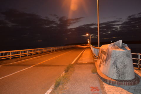 外に出ると日は完全に落ちていた。来間大橋の道路照明が淡く光っている。その向こうの空には雲が出ていた。でも、予報では明日も晴れだ。そうあってほしい。