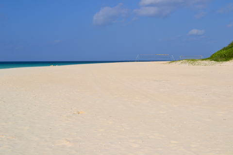 光が当たると砂の白さがきわだつ前浜ビーチ。本当に目が痛くなる。 |