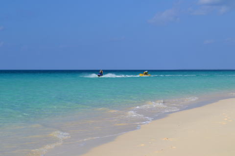 時刻はまだ11時前だが、気温はぐんぐん上がり、まるで初夏を思わせる暑さだ。バナナボートで疾走する高校生たちの歓声も夏のもの。とても1月とは思えない。 |