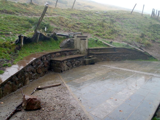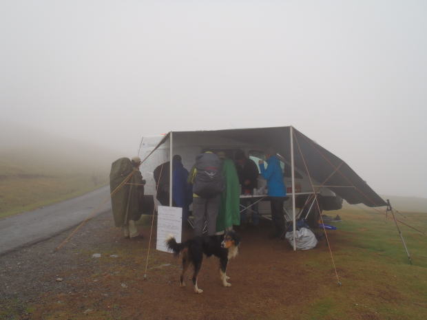 寒い。ズボンがかなり濡れている。シャツは汗で、これまたグッショリ。ロンセスバージェスは標高950mだというから、こんな悪天候になると気温も下がるのだろう。