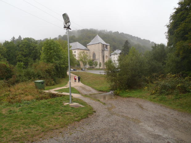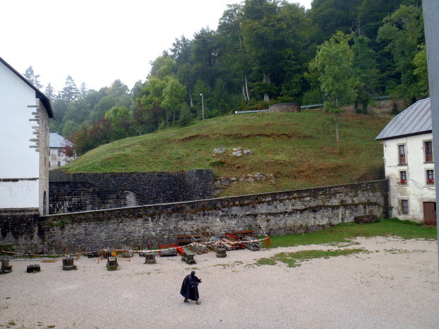 12時44分にようやくロンセスバージェスの最初の建物が見えてきた。8時に出発してから約5時間で17km踏破。雨のピレネー越えにしてはまあまあじゃないかな。