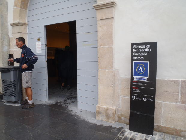 ▼案内板の「Orreagako Aterpea」をあとで調べたら、バスク語(バスク地方の言語)で「ロンセスバージェスのアルベルゲ」という意味。なんのことはない、スペイン語とバスク語が併記されているわけだ。でも、この書き方だと、とても併記とは思えないよなあ。どう見てもひとつながりの文章だよ。