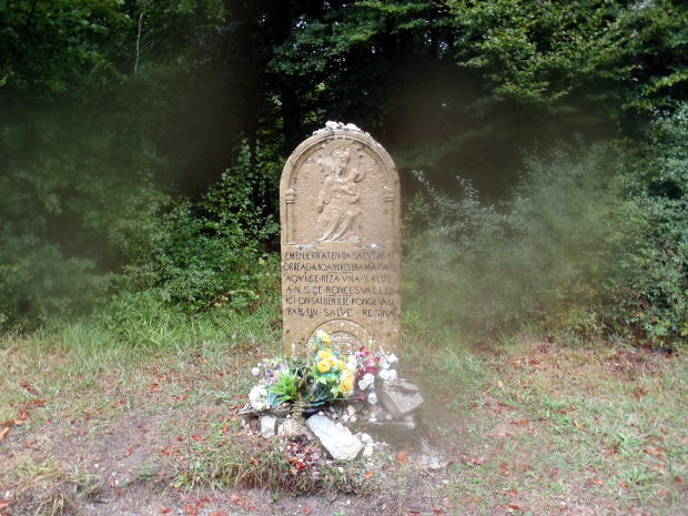 巡礼路の脇に石碑が建ち、花が飾られている。墓標のようにも見えるが。