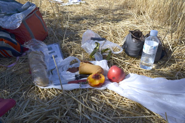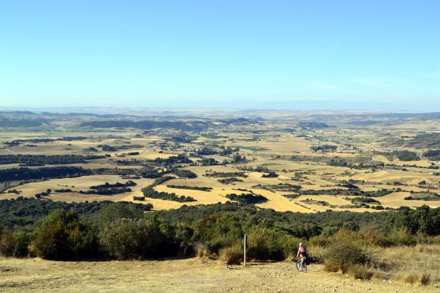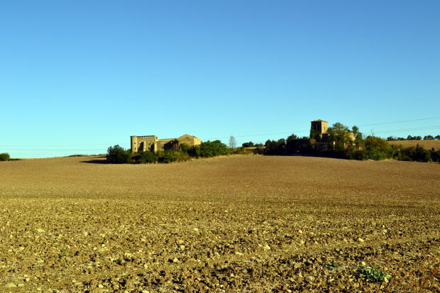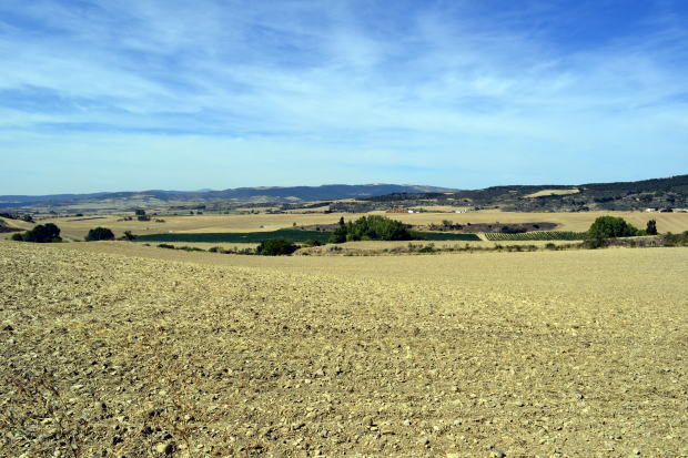 オリーブオイルも極力避けるとして、まったく摂らないということは不可能。料理に入っていればしかたがない。ただし、自分からそれをかけることはしないと決めた。 野菜だけはなんとかなる。バルやレストランでは必ず「サラダ」を頼むこと。そして、果物を常備。この時期は桃がおいしかった。ただ、リュックが重くなるのが欠点だが。 歩きはじめて1週間がすぎ、自分なりの規則を守りつつ、食事のパターンはだいたい固まってきた。不足する栄養分は持参したサプリメント(マルチビタミン・ミネラル)で補う。 がん養生中の身なので、本来なら玄米・菜食を続けるべきだが、スペイン巡礼中にそんなことができるわけがない。2か月足らずだし、ここは目をつぶることにして出かけてきた。なんとかなるだろうよ。 午前中に引き続き、見渡す限りの小麦畑の中をただただ歩く。収穫後の茶色い大地。ゆるやかなアップダウン。スペインは広いなあ。