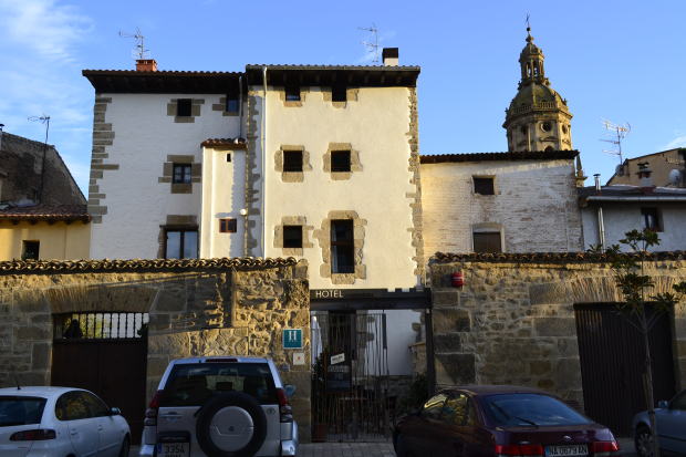 橋を渡るとすぐにきつい上り坂が待っていた。ハアハアいいながら、ようようアルベルゲ着。 ここまででけっこう疲れたのに、とどめのひと悶着でぐったり。差しだしたクレデンシャルにスタンプは押せない、と言われたのだ。 「そんなバカな!」(と、心の中で叫ぶ) 確かガイドブックには、アルベルゲでは通過証明のスタンプを押してもらえる、と書いてあったぞ。が、日本語のガイドブックを見せてもせんのないこと。結局、むこうの言い分は、「アルベルゲに泊まらない人にはスタンプは押せない」ということ。 スタンプを押すぐらいなんでもないだろうに。ぶつぶつ文句を言いながら町の中心部に戻る。まあ、ホテルは紹介してくれたからよしとするか。それにしても合点がいかない。 アルベルゲ、あるいはそこの管理者(オスピタレロ)は、巡礼者の守護を役目としている頼れる存在――と思っていた。だが、オスピタレロは総じて感じが悪く、かんしゃくを起してどなりちらしたり、宿泊しないとスタンプも押せない、など、どうも印象が悪い。 まだ旅を始めたばかりで、訪ねたアルベルゲもたった5軒だから即断はできない。それにしても、あんまりじゃないか。疲れているから、よけい頭にくる。 なお、あとでわかったことだが、アルベルゲの先着順については、わたしがアホだった。 どういうことかというと、先着順を採用しているのは公営のアルベルゲ。一方、私営のアルベルゲは予約をとったり食事を出したり、サービスにこれつとめて客を集める。 その違いがわからず、アルベルゲはすべて先着順と思いこんでしまったのが、わたしのアホなところだ。よく読めば、ガイドブックにもそう書いてあった。 ひょっとしたら、スタンプを断られたのも何かの理由があるのかも。言葉が通じないのでわたしが理解できなかっただけかもしれない……。 いつになく弱気になりながら、先ほど歩いてきたマヨール通りを引き返す。 紹介されたホテルは通りに面していた。一泊45ユーロ、朝食を食べるなら+5ユーロ。Wi-Fiが使えるというので50ユーロで決定。