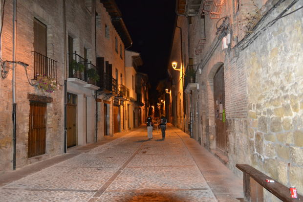 4年数か月ぶりの乾杯! 【10日目◆12年9月18日(火)◆曇り時々晴れ◆Estella➔Los Arcos◆21.8km/累計135.5km】 朝方、あちこちから生活の音が聞こえてくる。足音を忍ばせて歩く、でも足音とわかる音。トイレの水を流すものすごい音(ゴワッーという轟音)。 それで目が覚めたが、まだ早い、もう少し寝ていよう。気持ちよくウトウト1時間ぐらい。どれ、と時計を見ると、5時を少しまわっている。起きよう。 荷物を抱えて1階の食堂スペースへ。身支度を整えている間に、2、3人の宿泊者が朝食を食べ、出発していく。 外は真っ暗。お遍路旅で教わった「早発ち、早泊まり」の原則は、サンティアゴ巡礼でも生きている。早く着けばいいことだらけ。そのためには早発ちに限る。