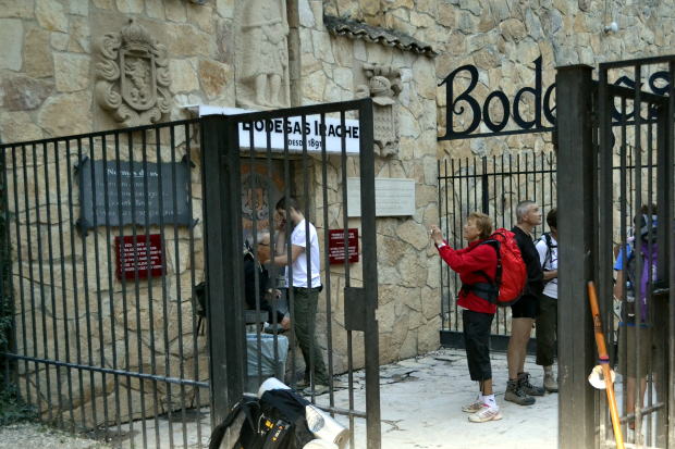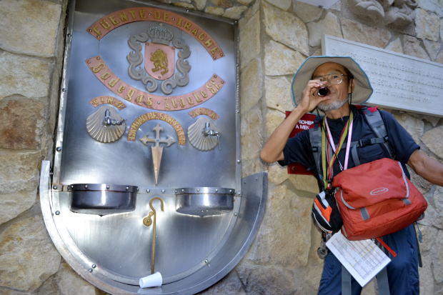 ガイドブックで確認しておいた今日の楽しみは「ワインの泉」だ。イラーチェ村にあるその泉に着いたのは8時4分。すでに多くの巡礼者が立ち寄っていた。