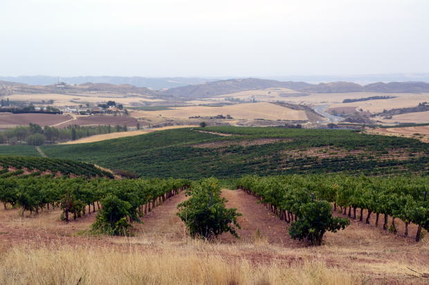 小さな村を通り、小麦畑とブドウ畑の中を歩く。村を2つ過ぎると、あとは今日の宿泊地、ロス・アルコスまでの12km、村はない、とガイドブックに書いてあった。小麦畑の大海原――とも表現されていたが、ゆるやかな起伏を見せる大地は、まさに大海原だ。歩くしかないな。
