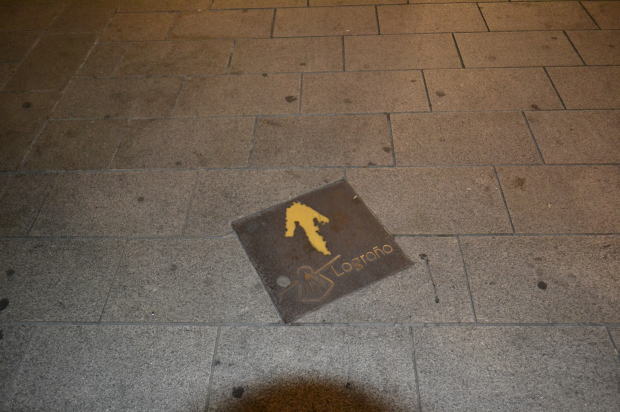5時起床、6時出発のパターンができつつある。それはそれでいいのだが、問題は出発するときはまだ暗いこと。標識を見つけるのがむずかしいのだ。とくに都会は見逃しやすい。 今朝は、昨日のうちに下見をしておいたので、最初はまったく不安がなかった。ログローニョの街では、歩道にホタテ貝のマークや黄色い矢印があるので、それに従うだけだ。