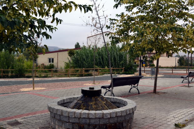 泉をさがしながら歩いていくが、それらしいものが見当たらない。そのうちに、村の中心は通り過ぎてしまった。 見落としたかな。そう思っていた矢先、公園らしきものが現れた。 だが、これが例の泉のある広場なの? わたしがイメージしていたものとはまったく違う。ベンチがあるので休憩にしたものの、どうも釈然としない。