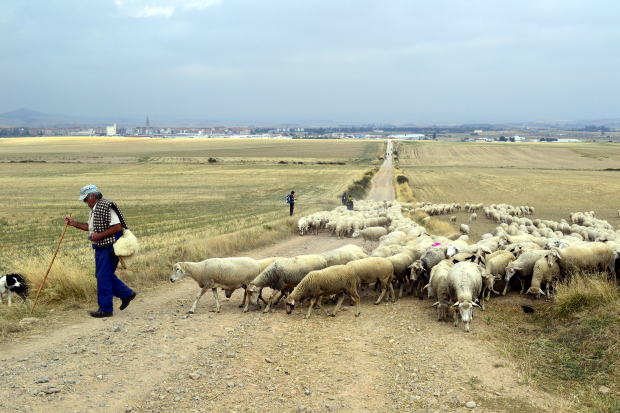 おっと、また羊の群れだ。餌になるものといっても、さて、何があるのだろう。立ち枯れた路傍の草、それに刈り取られた小麦の、根本から15センチほど残された茎ぐらいか。