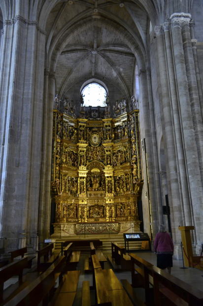 夕食にはもう一度出かけるが、それまでの時間、居心地のいいロビーで絵葉書を書き、食堂のテーブルで日記をつける。 夕方、有名なカルサーダの大聖堂を見学。チケット3・5ユーロ。隣接するタワーが1ユーロ。 ちょっと暗いカテドラルの内部は静かだ。気持ちが安らぐのがわかる。 フランスのルルドの泉に行ったとき、初めて教会の内部に足を踏み入れた。そのときに感じた安らぎは、長く心に残った。 それ以来、今回の巡礼旅では、機会があれば教会に入り、聖堂や礼拝堂の長椅子に座って、しばしの休息をとるようにしている。 信者ではないから祈ったり瞑想したりするわけではない。単純に休息のためであり、椅子に