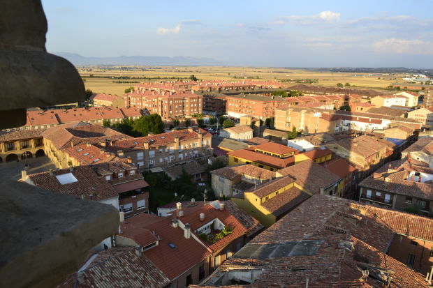 大聖堂に隣接する建物はタワーと呼ばれているようだが、そこからはカルサーダの町が見渡せる。西日を受けた大聖堂の尖塔が赤い屋根に影を落とし、その向こうで町は途切れ、白茶けた大地が広がる。 今日、歩いてきた道がどのあたりなのか定かではないが、いずれにせよ、あの茶色い耕地を抜けてこの町に着いた。明日、この町を出れば、すぐに家並はなくなり、同じような茶色い大地を黙々と歩いて、次の町に着くのだろう。まさに線と点の繰り返しだな。