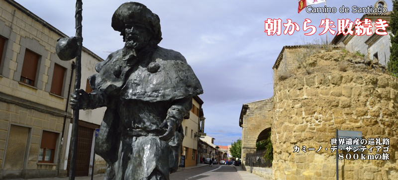 ▼このあたりが町の中心のようだ。道路の真ん中に巡礼者像が建っていた。
