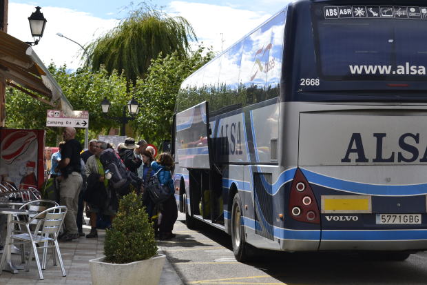 ▼町の通りを歩いているとALSAのバスから降りる巡礼者の一団に出会った。ALSAはスペインの各都市を網羅するバス会社だから、マドリードあたりからやってきた巡礼者たちかもしれない。