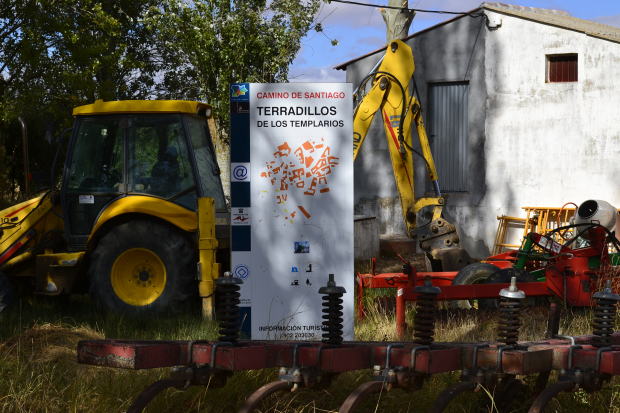11時5分。休憩終わり。出発。日ざしが暖かくなったので半ズボンにしてみた。まだちょっと寒い。なおすのは面倒だからこのまま行こう。次の休みで元に戻せばいいや。 2時間歩いて、12時52分、今日の目的地テラジージョス・デ・ロス・テンプラリオス村に着いた。人口90人ほどの小さな村で、私営アルベルゲが2軒、とガイドブックにある。