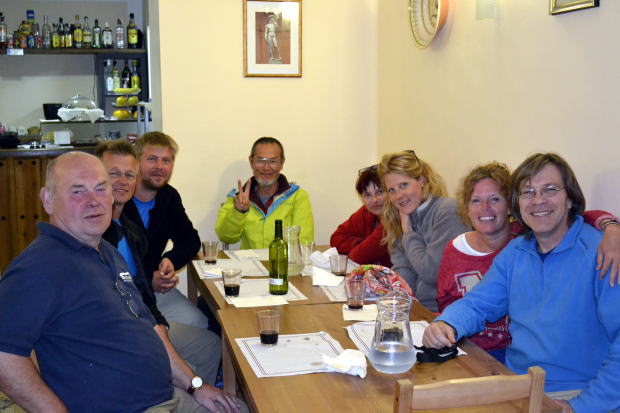 日差しは強いが、適度に風があり、村の中ではうるさかった小バエも、ここまでは飛んでこない。実に気持ちがいい。360度、視界をさえぎるものもなく、地平線を見ることができる場所なんて、日本にあったかな。 晴々した気持ちでアルベルゲに戻る。泊り客が増えていた。 夕食はアルベルゲに泊まった7人の会食。スパゲティー(一皿目)とサラダ(二皿目)という献立。パンは別につくが、とても腹いっぱいとはいかないぜ。 どうもこの会食というやつは苦手だ。みんなはワインを飲みながらだけど、わたしはがんが完治するまで断酒。もともとはのんべえなだけに、ちょっとイラつく。そのうえ、やたらと話が長い。英語ができないと、座っているのが苦痛になる。