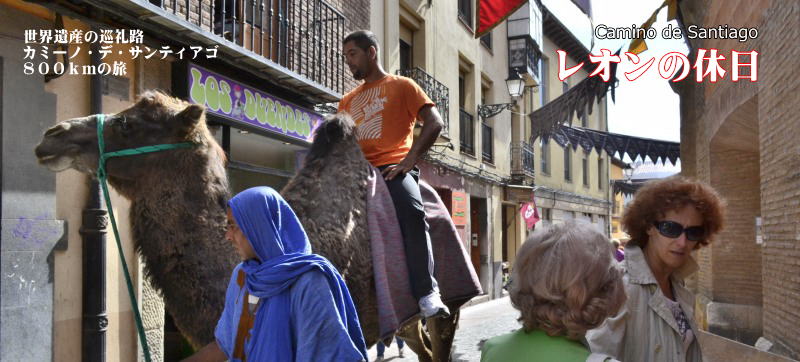 10時からレオン市街の散策。最初は巡礼路の確認のため、黄色い矢印をたどり、街の出口方面へ行く。大きな街の場合、巡礼路をたどるのが大変なのだ。