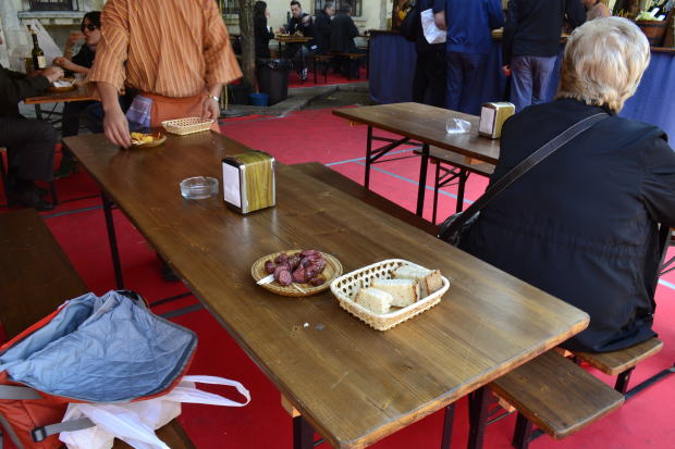 ▼チョリソを頼んだらパンが3切れついて9ユーロ。高い。間違いなく観光客値段だね。