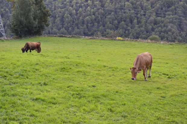 ▼アルベルゲ向かいの斜面は牧場になっている。牛がのんびり草を食んでいた。